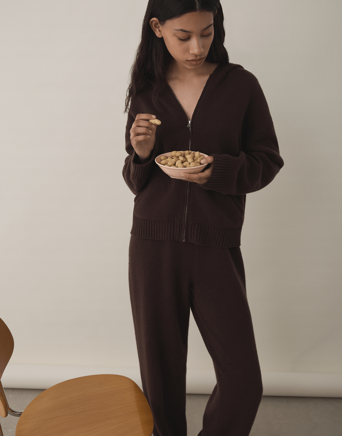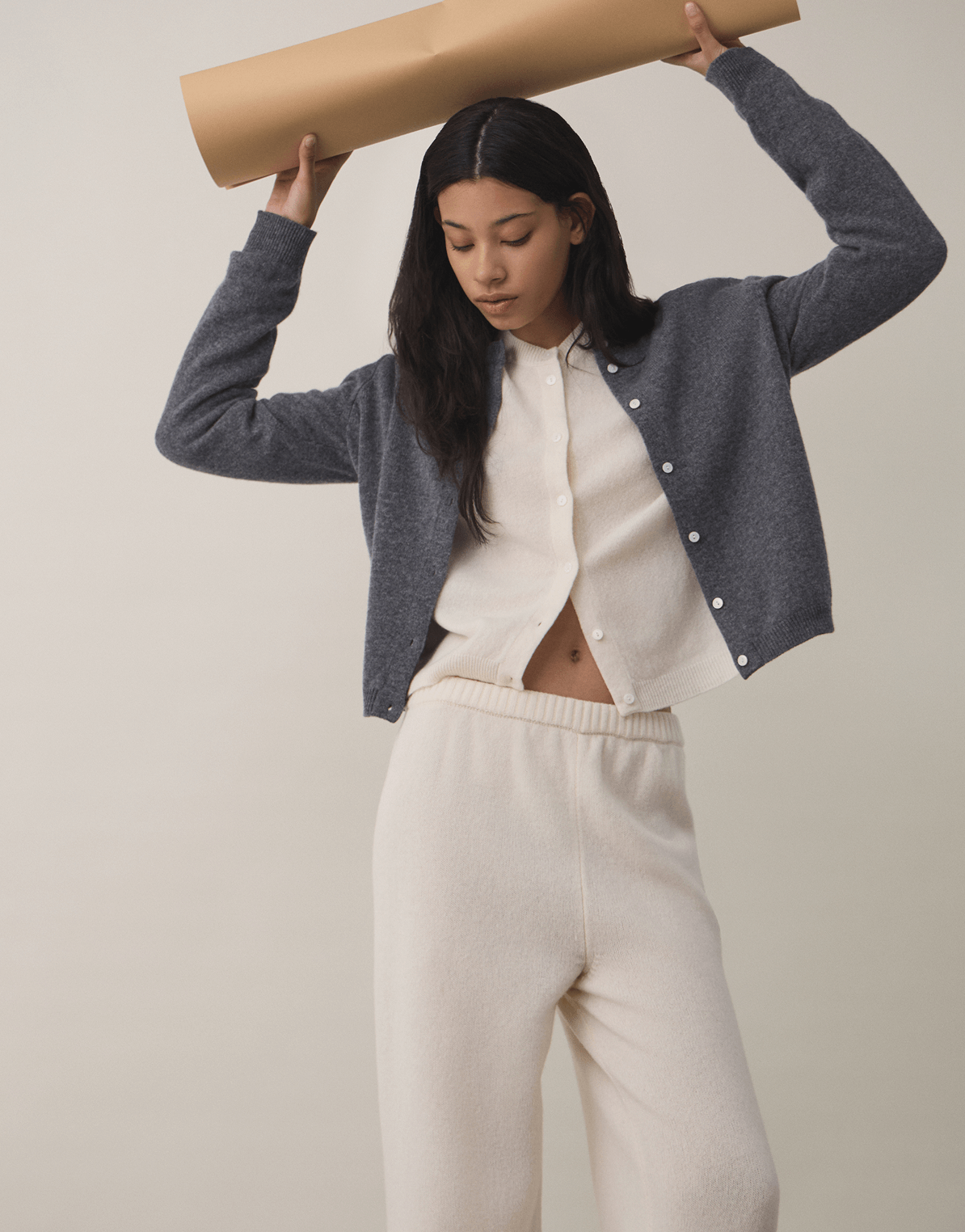 Свобода объемов: естественная линия плеча в худи, расслабленные кардиганы и выверенные пропорции джемперов с коротким рукавом.
