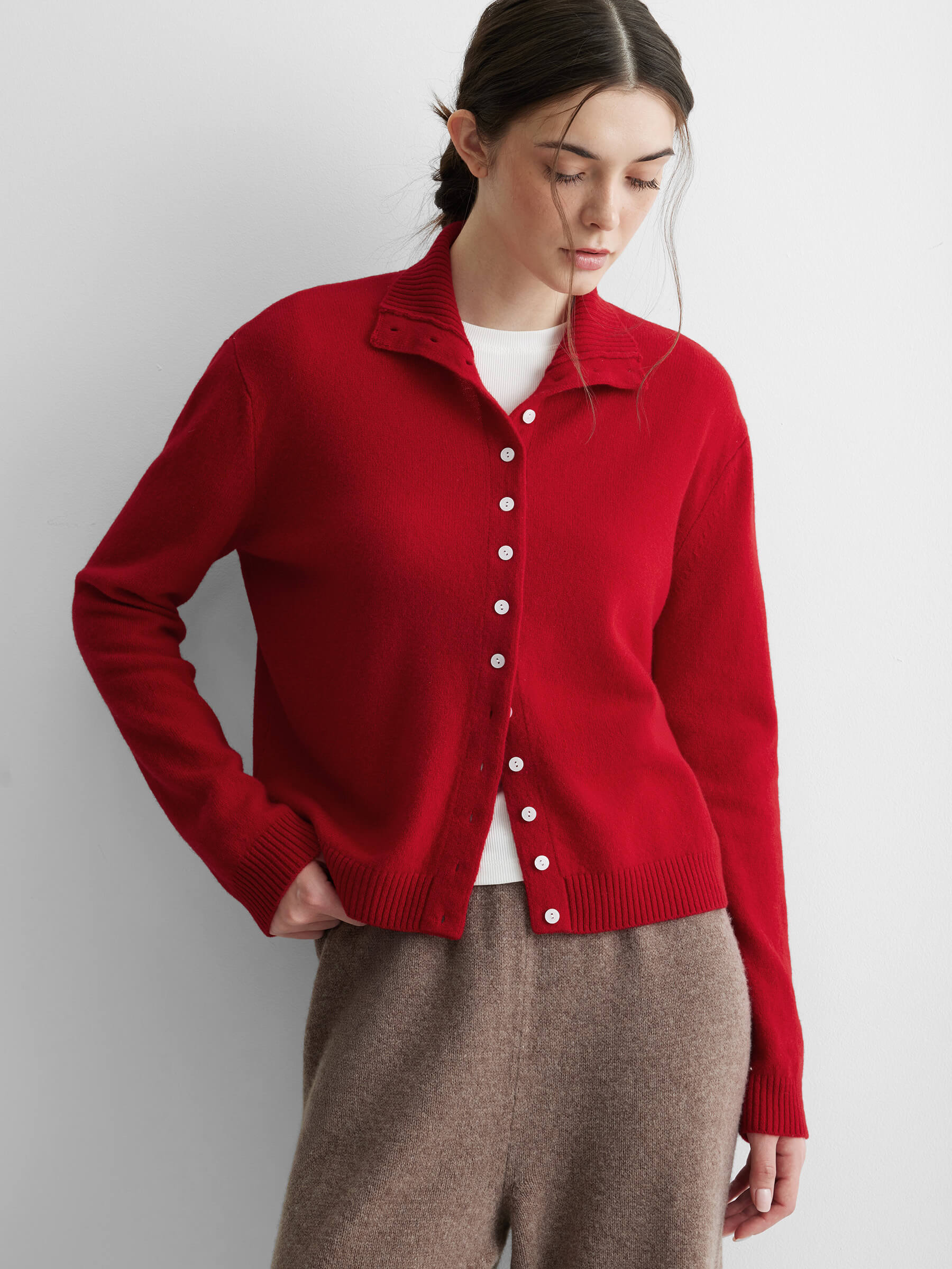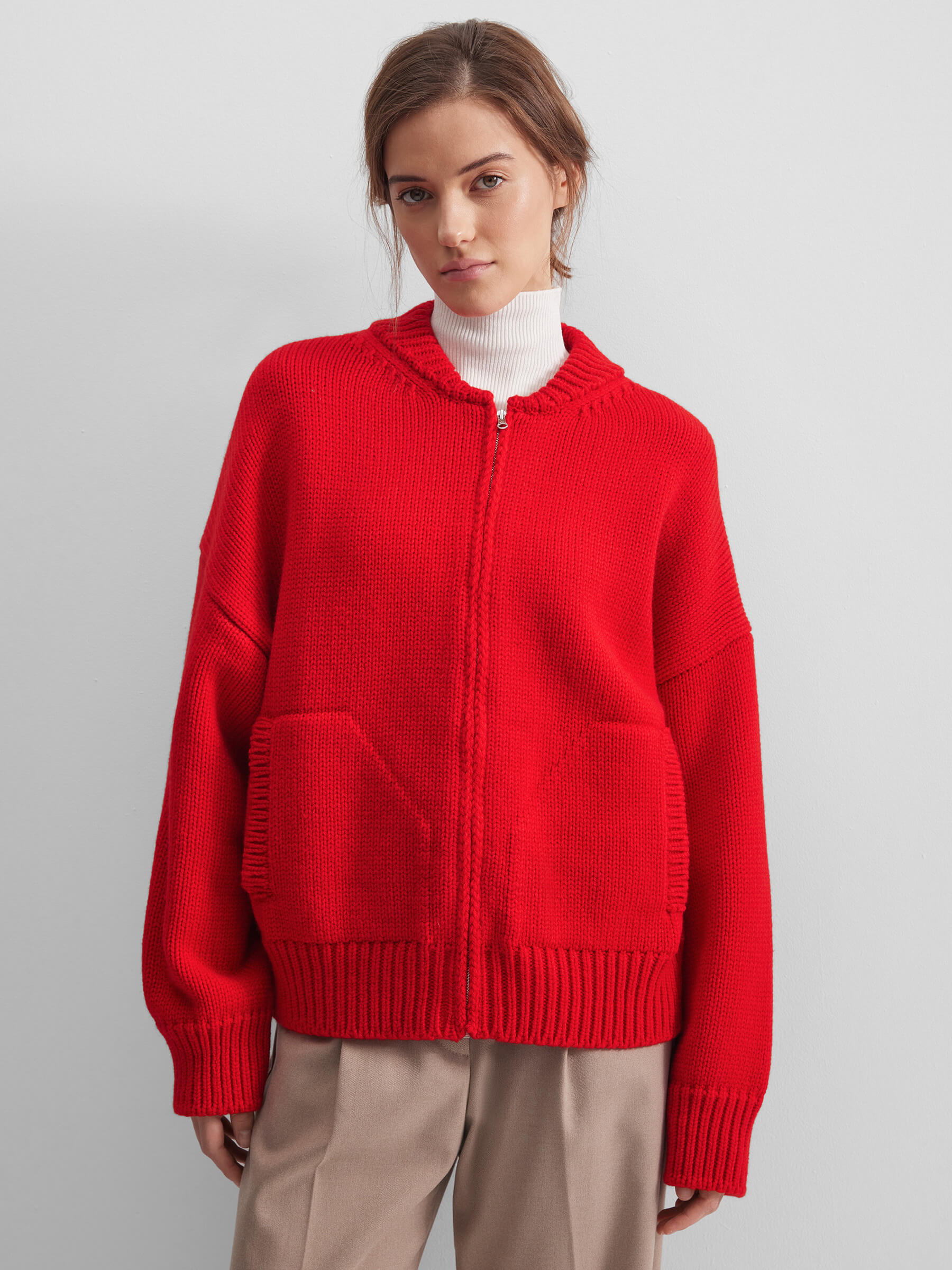Кардиган с высоким воротником из 100% мериноса, красный