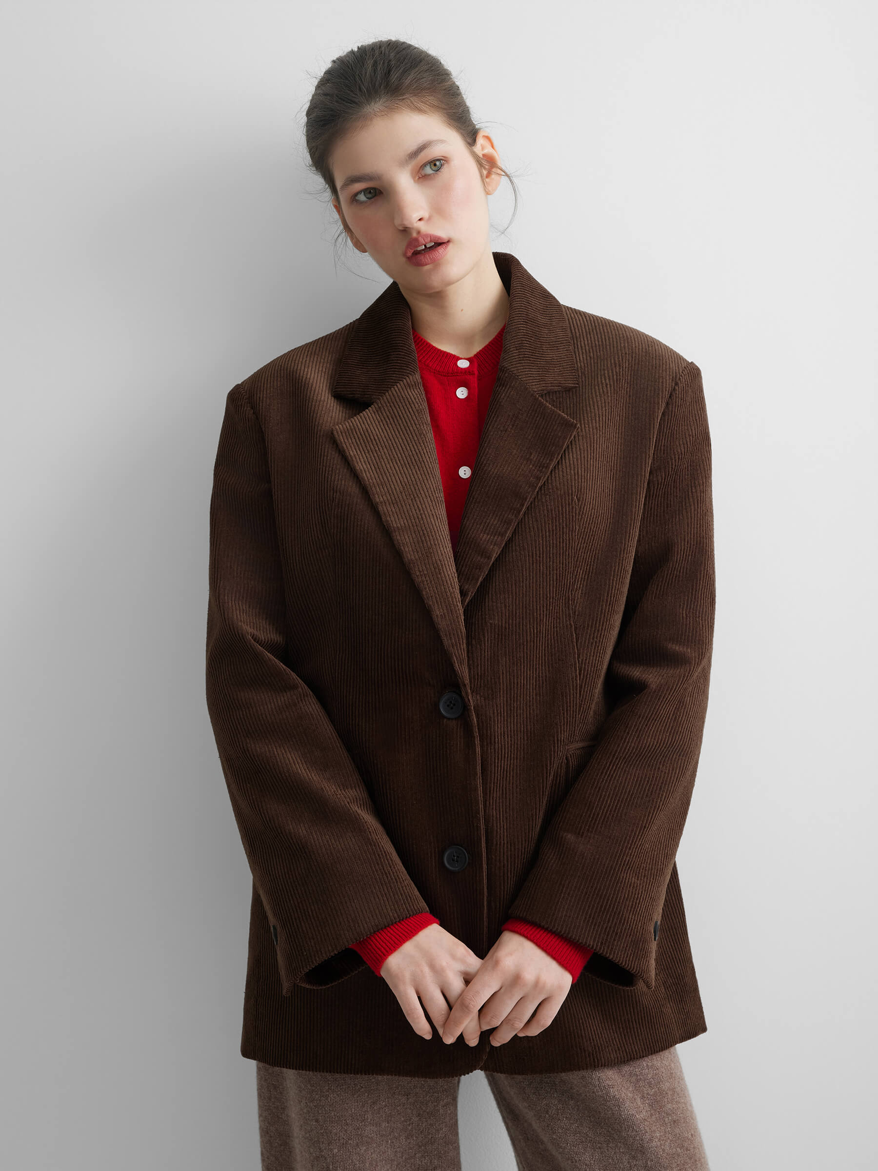 Жакет однобортный из вельвета, коричневый