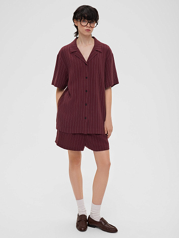 Рубашка свободного кроя с коротким рукавом, коричневый Рубашка свободного кроя с коротким рукавом, коричневый