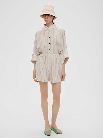 Шорты можно носить не только летом, но и в межсезонье. В каталоге бренда Aim clo представлены костюмные дуэты из фактурной ткани с добавлением шерсти: короткие шорты с идеальной посадкой в комплекте с двубортным пиджаком можно сочетать с каблуками для специальных выходов, или усилить многослойность свитером свободного кроя, а также обувью на плоском ходу и чувствовать себя стильно в любой ситуации.