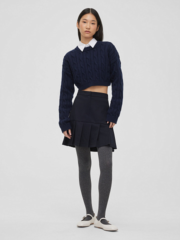 - Смелые и короткие мини-юбки подчеркивают фигуру. Это символ молодости и уверенности в себе. В ассортименте Aim clo есть мини-юбки с запахом из костюмной ткани, модель со складками, а также вариант на пуговицах с удобными боковыми карманами. Предлагаем сочетать мини-юбки с объемным верхом: рубашкой свободного кроя или оверсайз свитером.